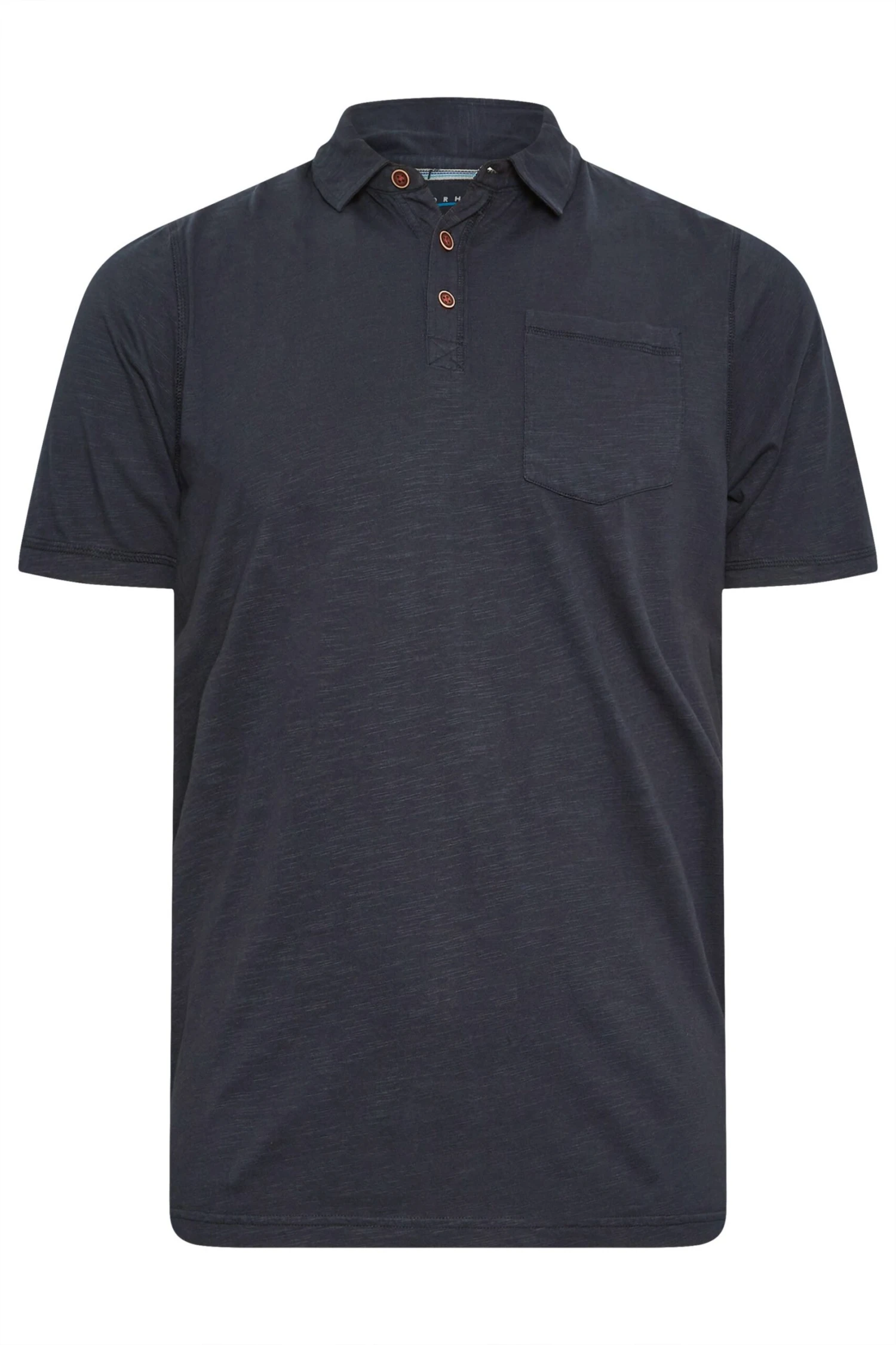 BadRhino Big & Tall Navy Blue Slub Short Sleeve Polo Shirt