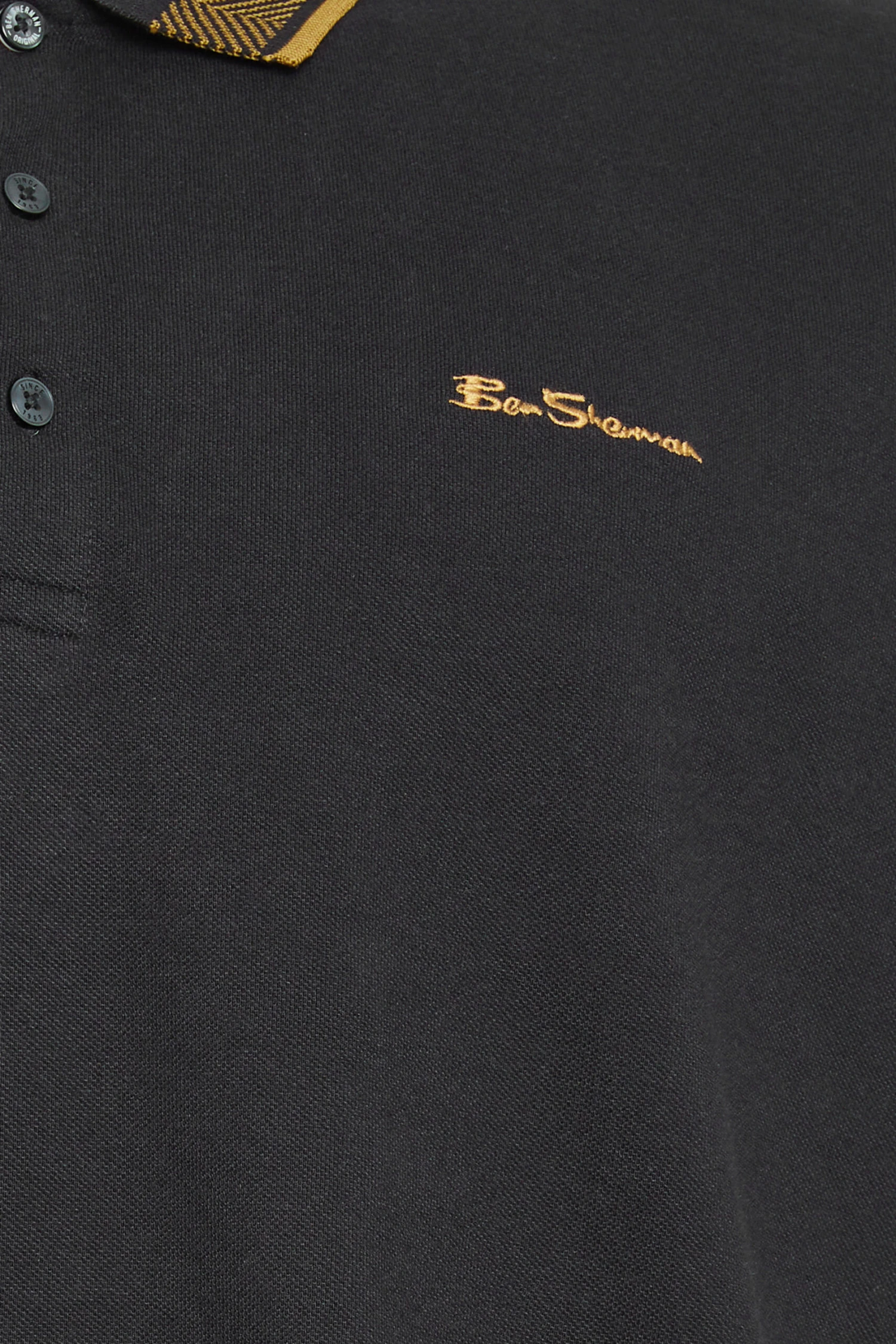 BEN SHERMAN Big & Tall Black Chevron Collar Polo Shirt