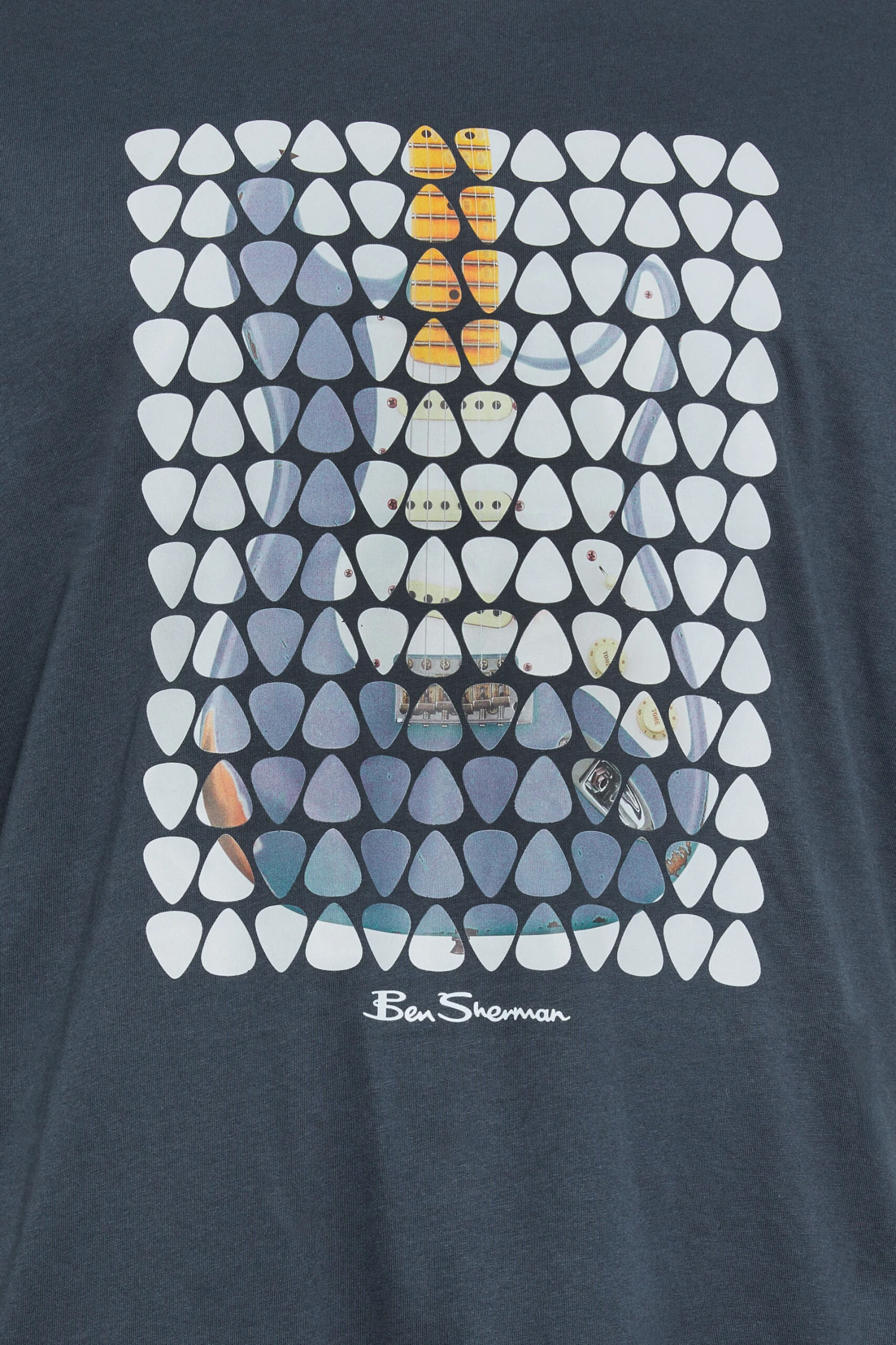 Give your wardrobe a new season refresh with this printed t-shirt exclusive to Ben Sherman. Constructed from a pure organic cotton fabric, it features a brand logo to the chest alongside a plectrum print. Team with denim jeans and trainers for a smart-casual style.