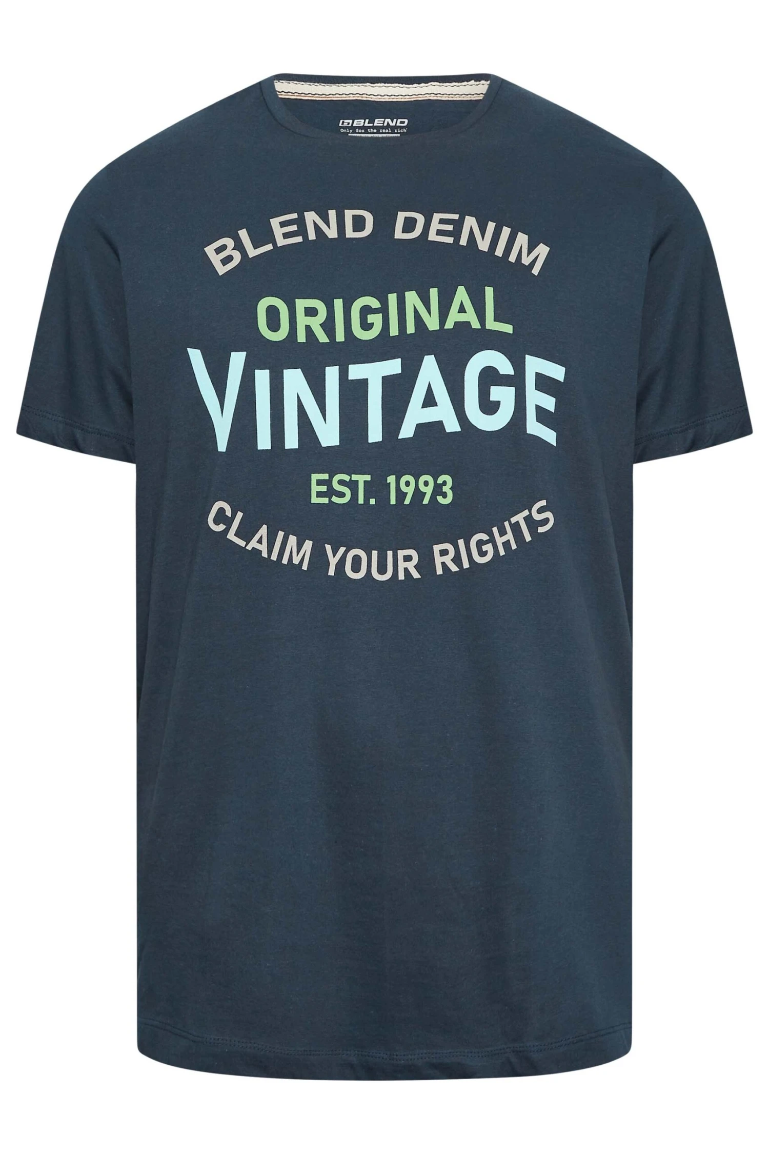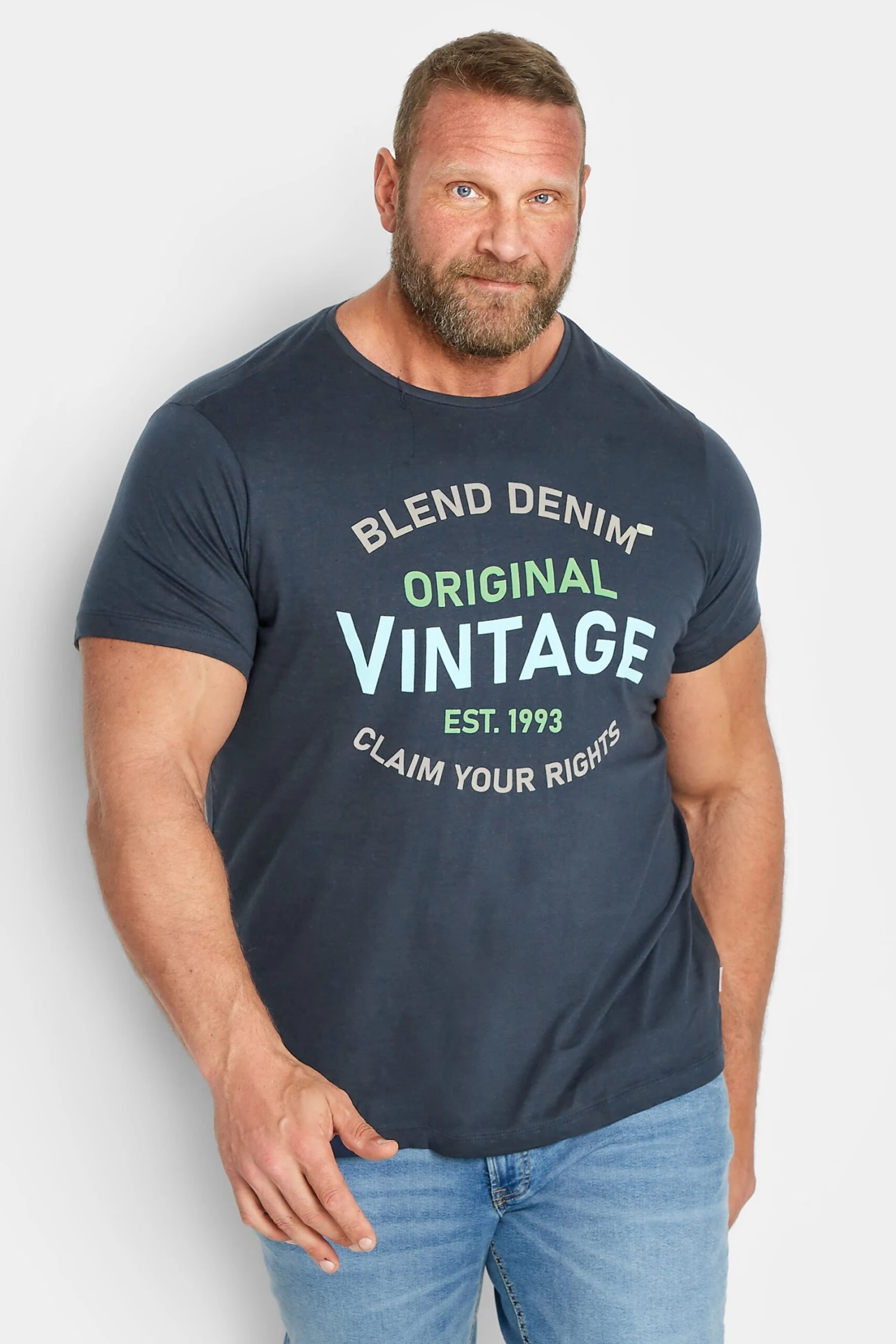 BLEND Big & Tall Navy Blue Vintage Logo Print T-Shirt