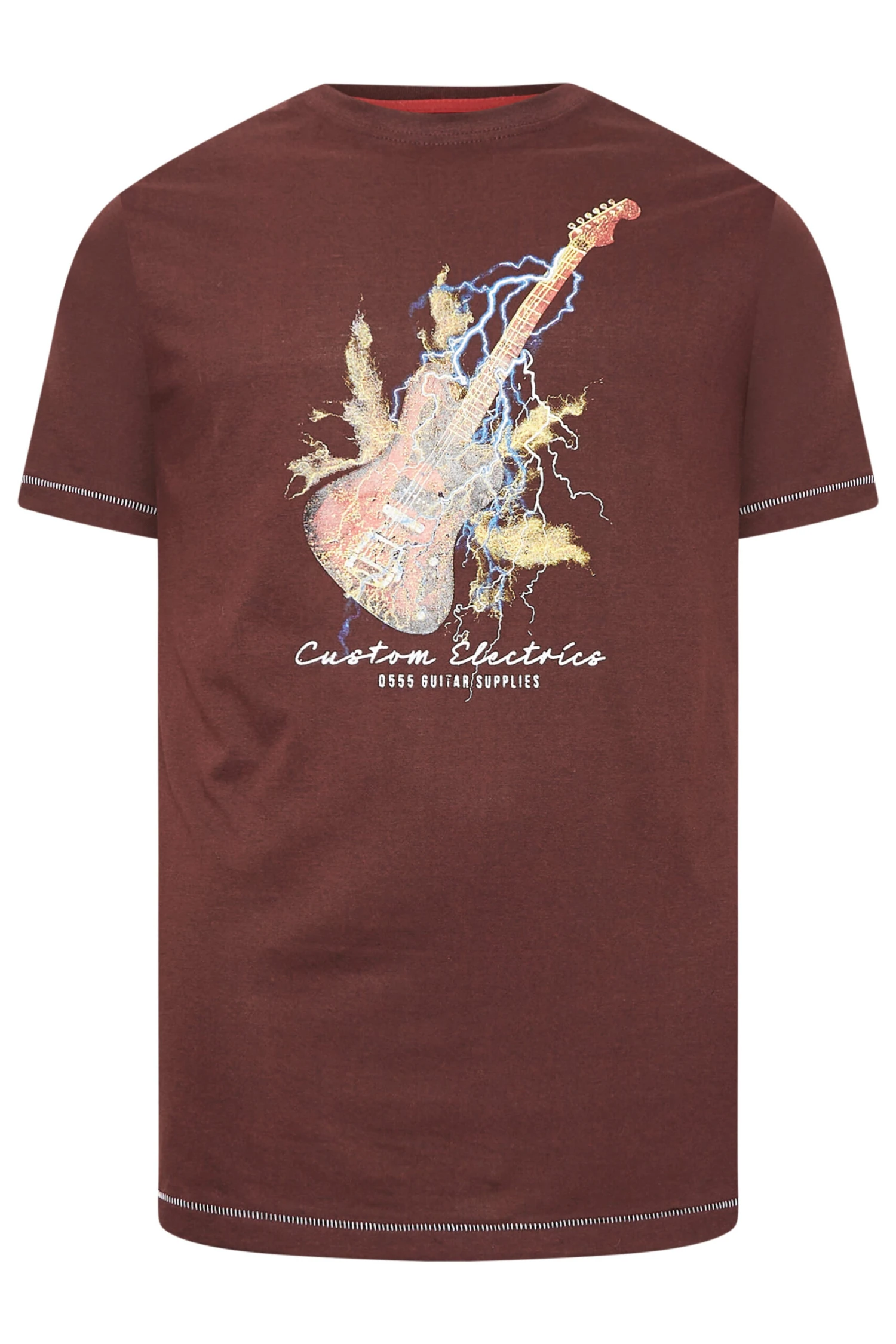 Refresh your casual collection with this new-in t-shirt from D555. Constructed from a soft cotton fabric, it features a lightning bolt guitar print, a crew neckline, and short sleeves. Wear with jeans and trainers for an easy weekend look.