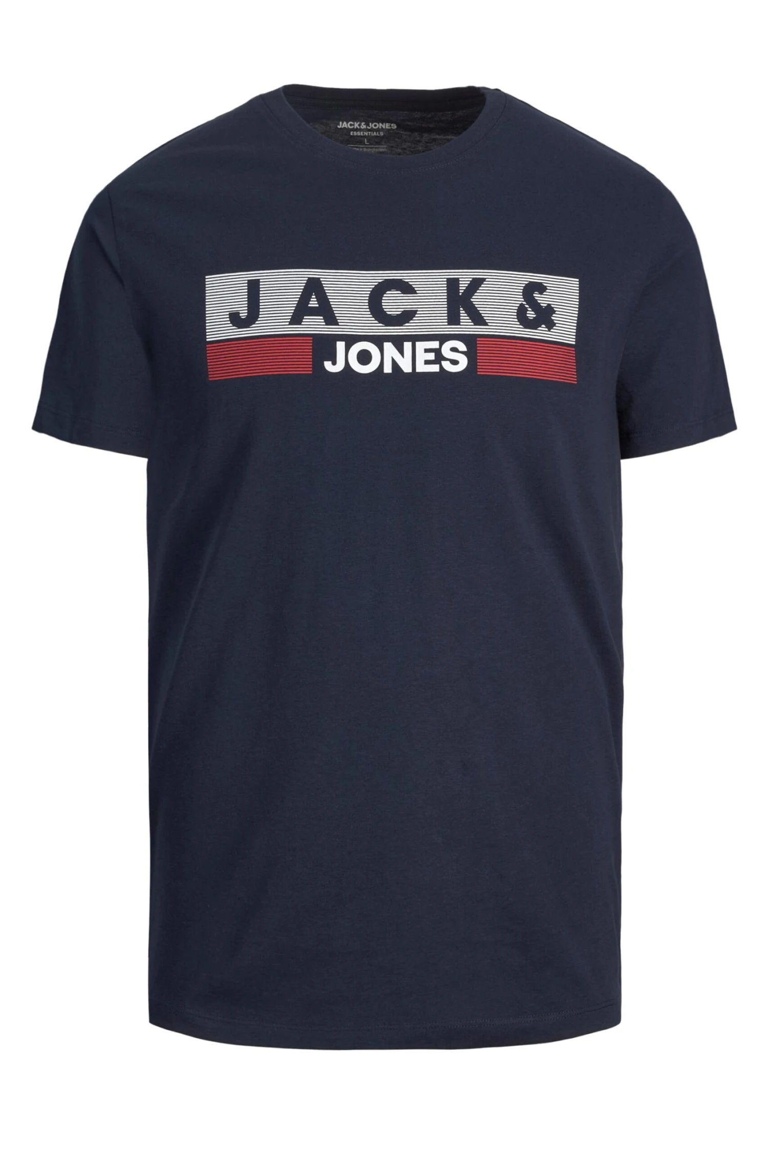 JACK & JONES Big & Tall Navy Blue Logo Print Short Sleeve T-Shirt