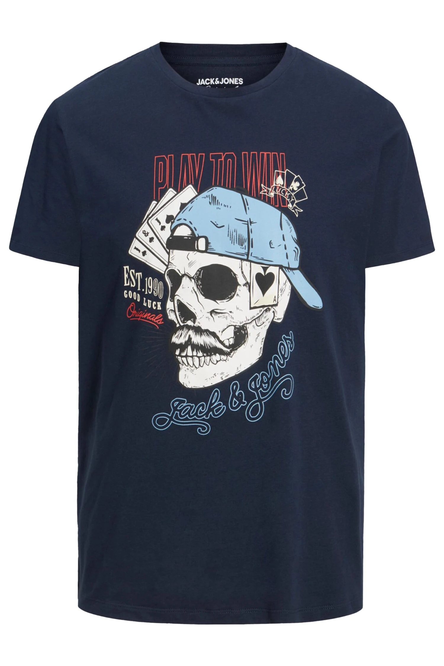 A must have for your everyday wardrobe! Made from a soft cotton fabric, this tee features a skeleton print design, the Jack & Jones slogan, short sleeves, and a crew neckline. Partner with jeans and trainers for a comfortable everyday look.