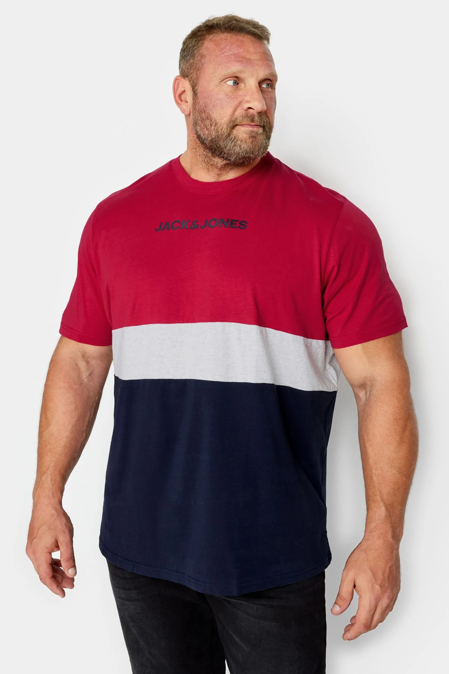 A new t-shirt to wear for your next night out. Constructed from 100% cotton, this Jack & Jones tee features a colour block design with a logo print, short sleeves, and a crew neckline. Wear with jeans and trainers for your weekend plans.