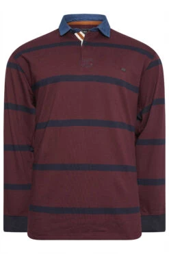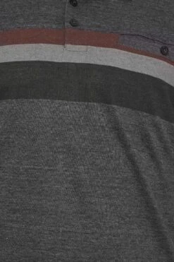 KAM Big & Tall Charcoal Grey Striped Long Sleeve Rugby Shirt
