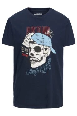 JACK & JONES Big & Tall Navy Blue Skeleton Hat Print T-Shirt